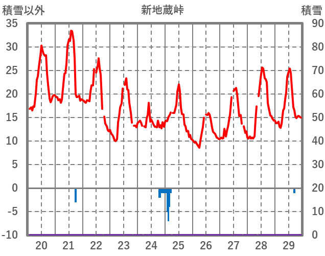 | 日 | 時 | 気温 | 降水 | 風向/風速 | 日照 | 積雪 | 降雪 |