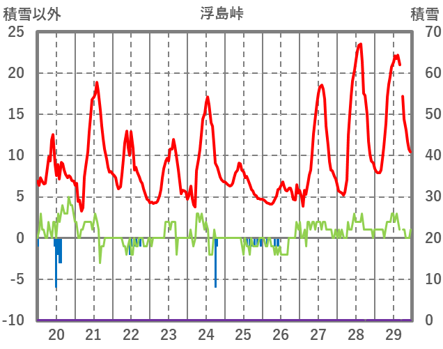 | 日 | 時 | 気温 | 降水 | 風向/風速 | 日照 | 積雪 | 降雪 |