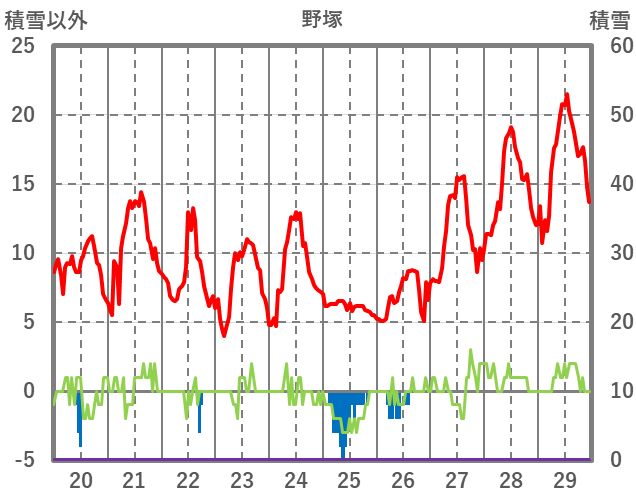 | 日 | 時 | 気温 | 降水 | 風向/風速 | 日照 | 積雪 | 降雪 |