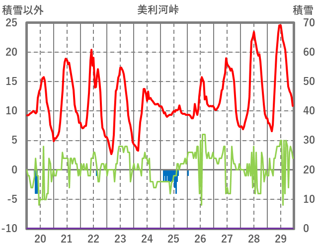 | 日 | 時 | 気温 | 降水 | 風向/風速 | 日照 | 積雪 | 降雪 |
