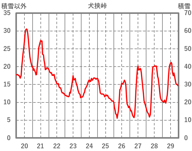| 日 | 時 | 気温 | 降水 | 風向/風速 | 日照 | 積雪 | 降雪 |