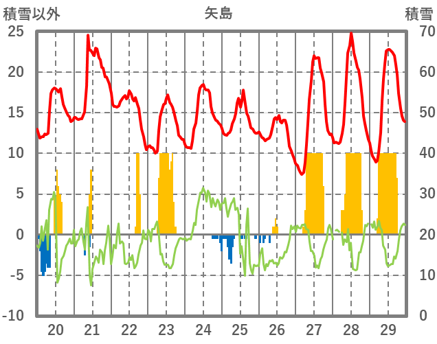 | 日 | 時 | 気温 | 降水 | 風向/風速 | 日照 | 積雪 | 降雪 |