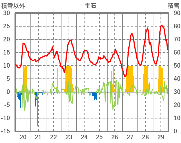 | 日 | 時 | 気温 | 降水 | 風向/風速 | 日照 | 積雪 | 降雪 |