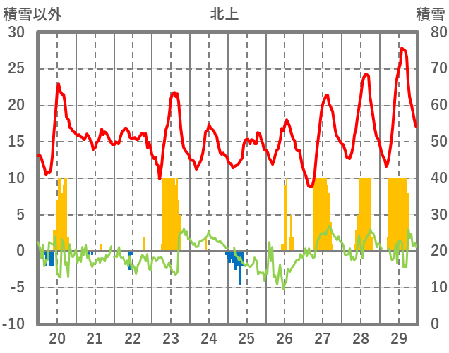 | 日 | 時 | 気温 | 降水 | 風向/風速 | 日照 | 積雪 | 降雪 |