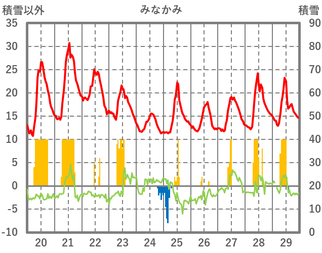| 日 | 時 | 気温 | 降水 | 風向/風速 | 日照 | 積雪 | 降雪 |