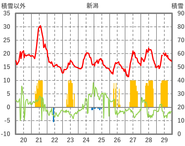 | 日 | 時 | 気温 | 降水 | 風向/風速 | 日照 | 積雪 | 降雪 |
