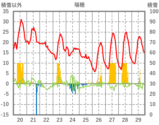 | 日 | 時 | 気温 | 降水 | 風向/風速 | 日照 | 積雪 | 降雪 |