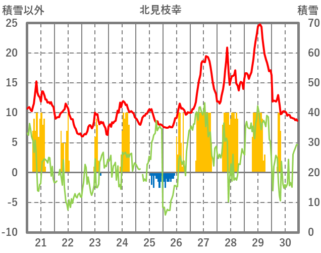 | 日 | 時 | 気温 | 降水 | 風向/風速 | 日照 | 積雪 | 降雪 |