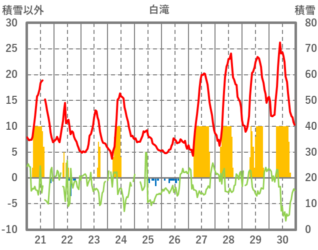 | 日 | 時 | 気温 | 降水 | 風向/風速 | 日照 | 積雪 | 降雪 |