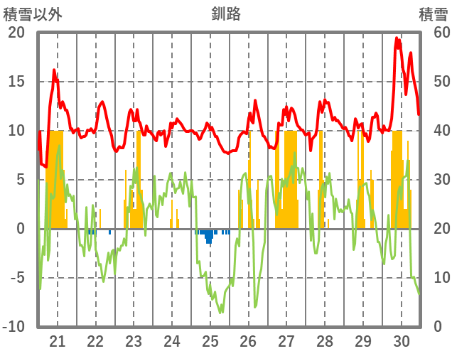 | 日 | 時 | 気温 | 降水 | 風向/風速 | 日照 | 積雪 | 降雪 |