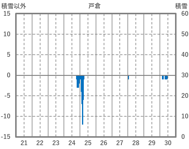 | 日 | 時 | 気温 | 降水 | 風向/風速 | 日照 | 積雪 | 降雪 |