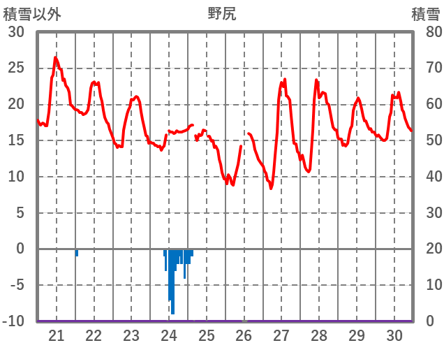 | 日 | 時 | 気温 | 降水 | 風向/風速 | 日照 | 積雪 | 降雪 |