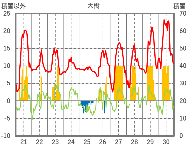 | 日 | 時 | 気温 | 降水 | 風向/風速 | 日照 | 積雪 | 降雪 |