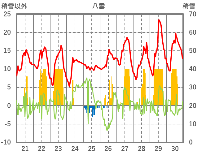 | 日 | 時 | 気温 | 降水 | 風向/風速 | 日照 | 積雪 | 降雪 |