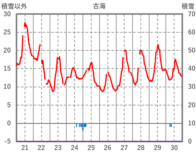 | 日 | 時 | 気温 | 降水 | 風向/風速 | 日照 | 積雪 | 降雪 |