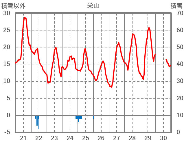 | 日 | 時 | 気温 | 降水 | 風向/風速 | 日照 | 積雪 | 降雪 |