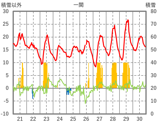 | 日 | 時 | 気温 | 降水 | 風向/風速 | 日照 | 積雪 | 降雪 |