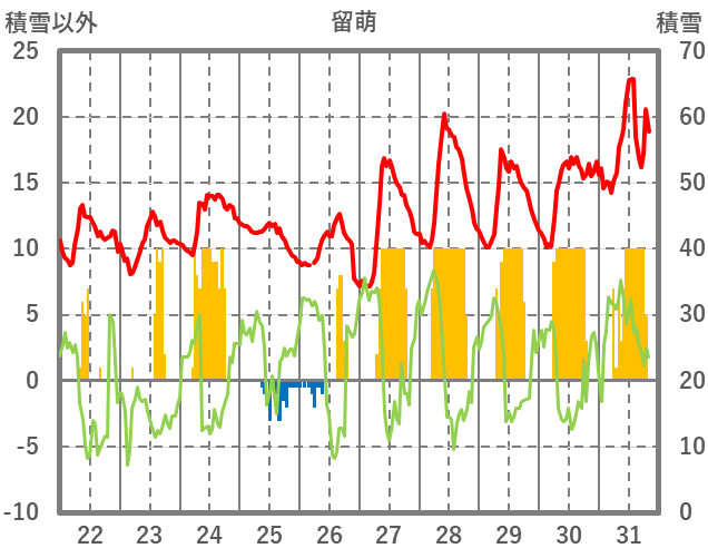 | 日 | 時 | 気温 | 降水 | 風向/風速 | 日照 | 積雪 | 降雪 |