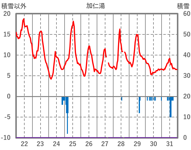 | 日 | 時 | 気温 | 降水 | 風向/風速 | 日照 | 積雪 | 降雪 |