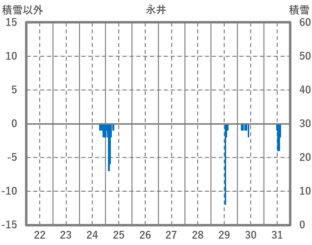 | 日 | 時 | 気温 | 降水 | 風向/風速 | 日照 | 積雪 | 降雪 |