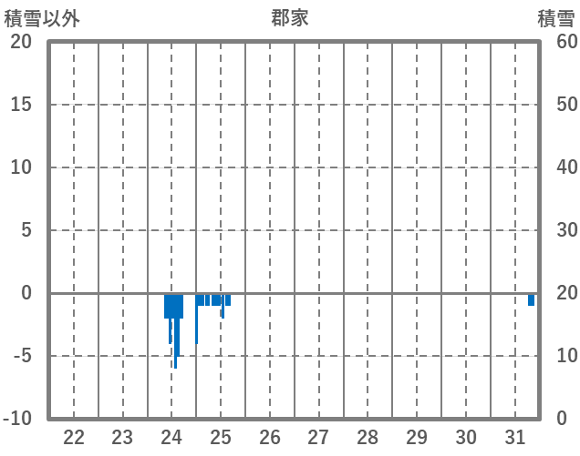 | 日 | 時 | 気温 | 降水 | 風向/風速 | 日照 | 積雪 | 降雪 |