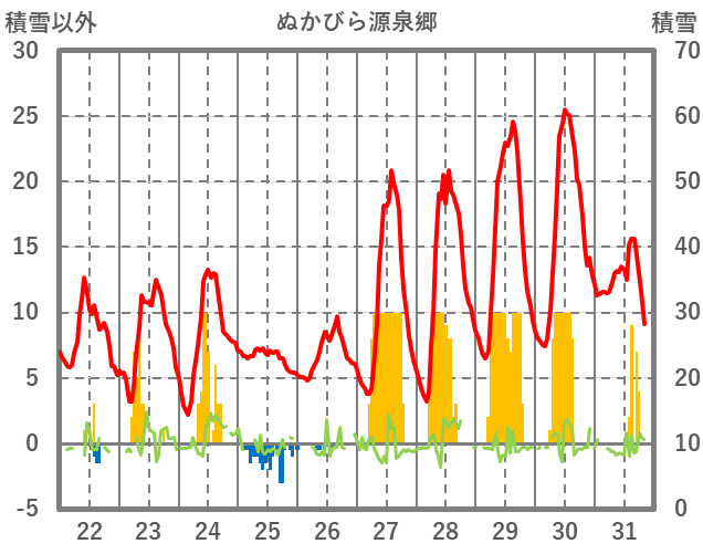 | 日 | 時 | 気温 | 降水 | 風向/風速 | 日照 | 積雪 | 降雪 |