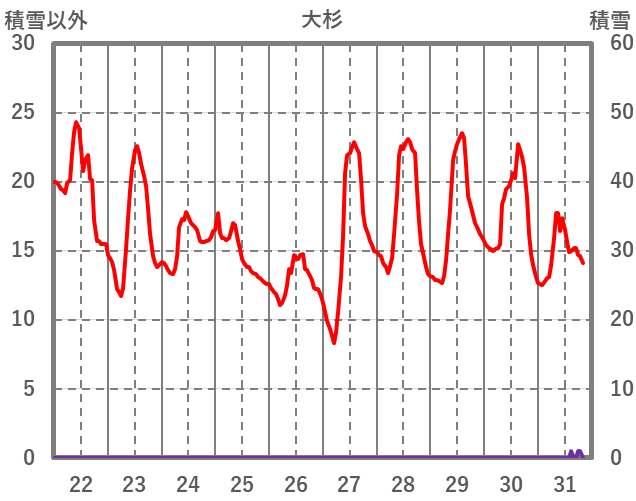 | 日 | 時 | 気温 | 降水 | 風向/風速 | 日照 | 積雪 | 降雪 |
