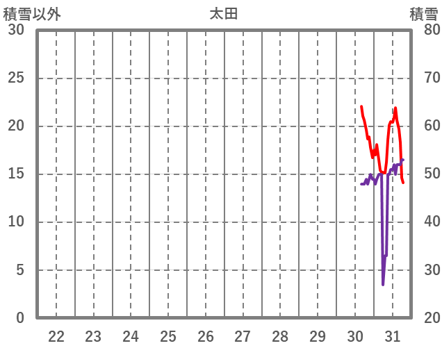 | 日 | 時 | 気温 | 降水 | 風向/風速 | 日照 | 積雪 | 降雪 |