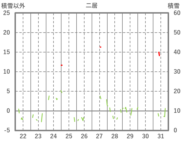 | 日 | 時 | 気温 | 降水 | 風向/風速 | 日照 | 積雪 | 降雪 |