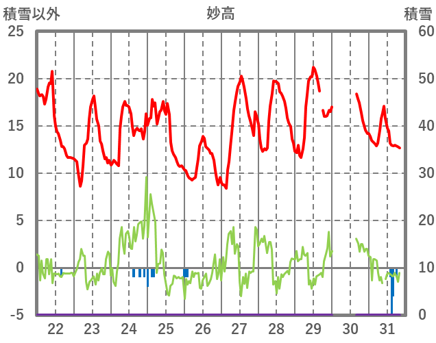 | 日 | 時 | 気温 | 降水 | 風向/風速 | 日照 | 積雪 | 降雪 |