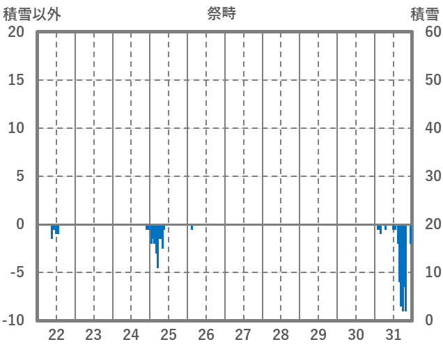 | 日 | 時 | 気温 | 降水 | 風向/風速 | 日照 | 積雪 | 降雪 |