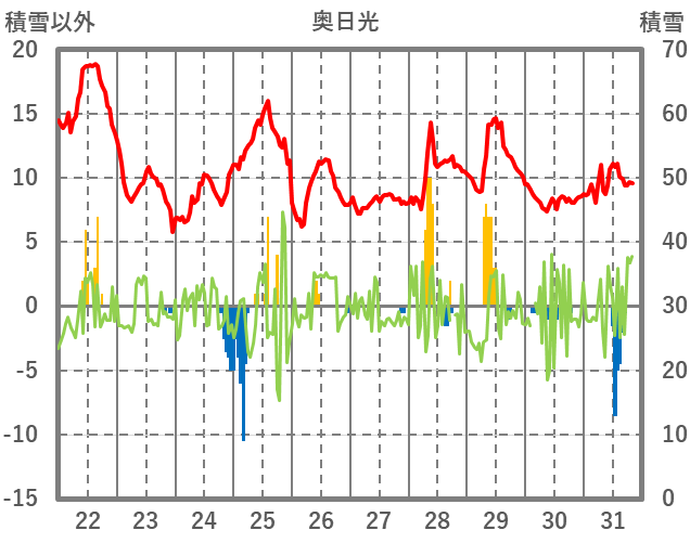 | 日 | 時 | 気温 | 降水 | 風向/風速 | 日照 | 積雪 | 降雪 |