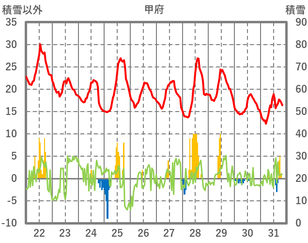 | 日 | 時 | 気温 | 降水 | 風向/風速 | 日照 | 積雪 | 降雪 |