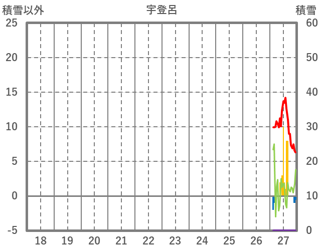 | 日 | 時 | 気温 | 降水 | 風向/風速 | 日照 | 積雪 | 降雪 |