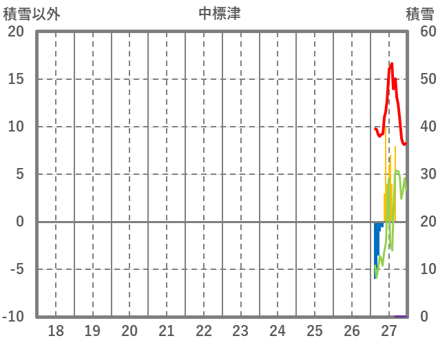 | 日 | 時 | 気温 | 降水 | 風向/風速 | 日照 | 積雪 | 降雪 |
