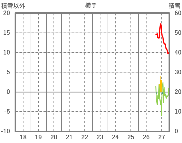 | 日 | 時 | 気温 | 降水 | 風向/風速 | 日照 | 積雪 | 降雪 |
