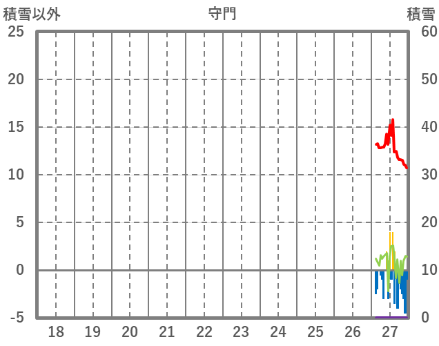 | 日 | 時 | 気温 | 降水 | 風向/風速 | 日照 | 積雪 | 降雪 |