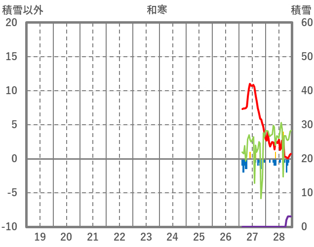 | 日 | 時 | 気温 | 降水 | 風向/風速 | 日照 | 積雪 | 降雪 |