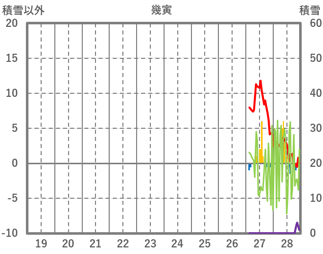 | 日 | 時 | 気温 | 降水 | 風向/風速 | 日照 | 積雪 | 降雪 |