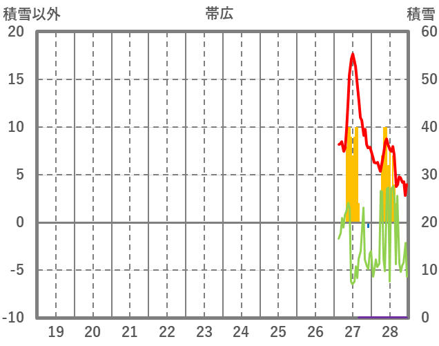 | 日 | 時 | 気温 | 降水 | 風向/風速 | 日照 | 積雪 | 降雪 |