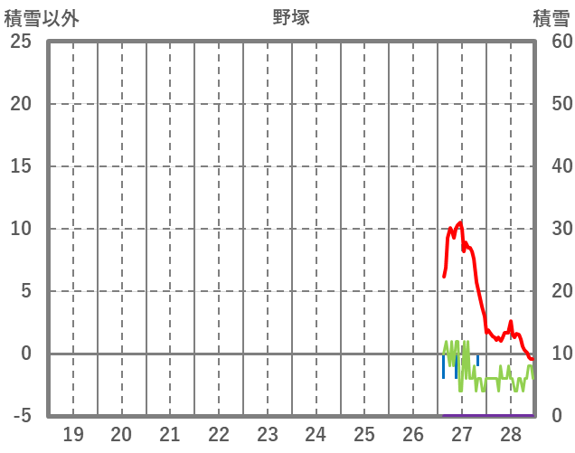 | 日 | 時 | 気温 | 降水 | 風向/風速 | 日照 | 積雪 | 降雪 |