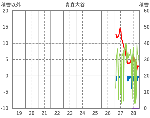 | 日 | 時 | 気温 | 降水 | 風向/風速 | 日照 | 積雪 | 降雪 |