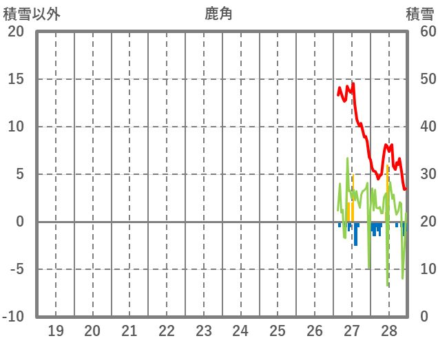 | 日 | 時 | 気温 | 降水 | 風向/風速 | 日照 | 積雪 | 降雪 |