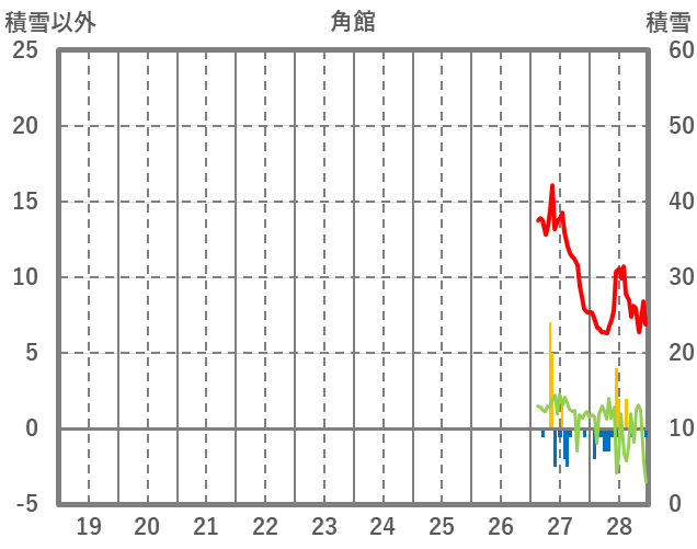 | 日 | 時 | 気温 | 降水 | 風向/風速 | 日照 | 積雪 | 降雪 |