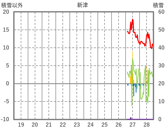 | 日 | 時 | 気温 | 降水 | 風向/風速 | 日照 | 積雪 | 降雪 |