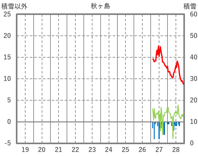 | 日 | 時 | 気温 | 降水 | 風向/風速 | 日照 | 積雪 | 降雪 |