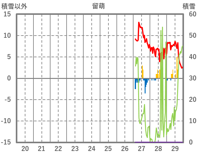 | 日 | 時 | 気温 | 降水 | 風向/風速 | 日照 | 積雪 | 降雪 |