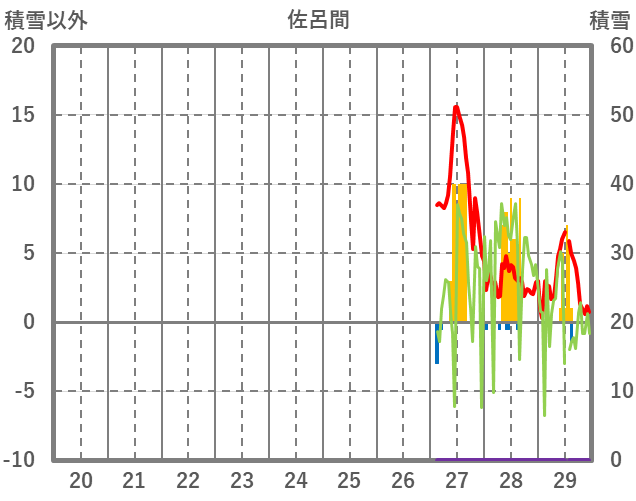 | 日 | 時 | 気温 | 降水 | 風向/風速 | 日照 | 積雪 | 降雪 |