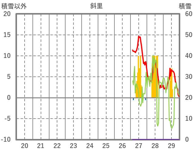 | 日 | 時 | 気温 | 降水 | 風向/風速 | 日照 | 積雪 | 降雪 |