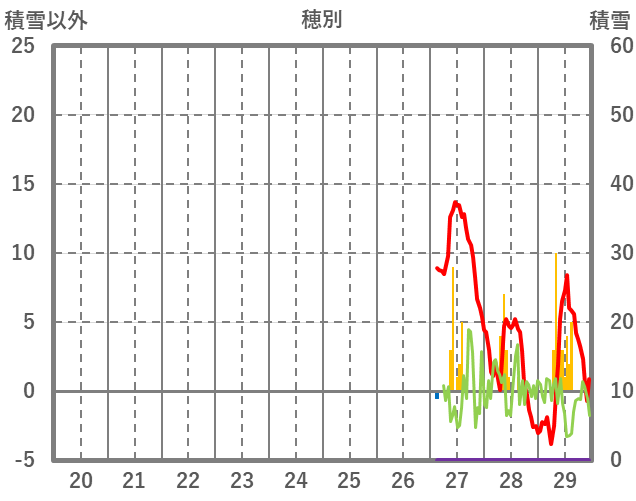| 日 | 時 | 気温 | 降水 | 風向/風速 | 日照 | 積雪 | 降雪 |
